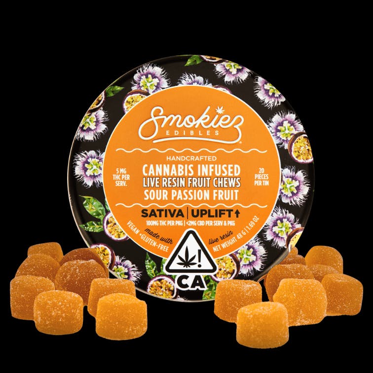 SOUR PASSIONFRUIT - LIVE RESIN GUMMIES - 20 PIECES - 100MG - SATIVA - SMOKIEZ