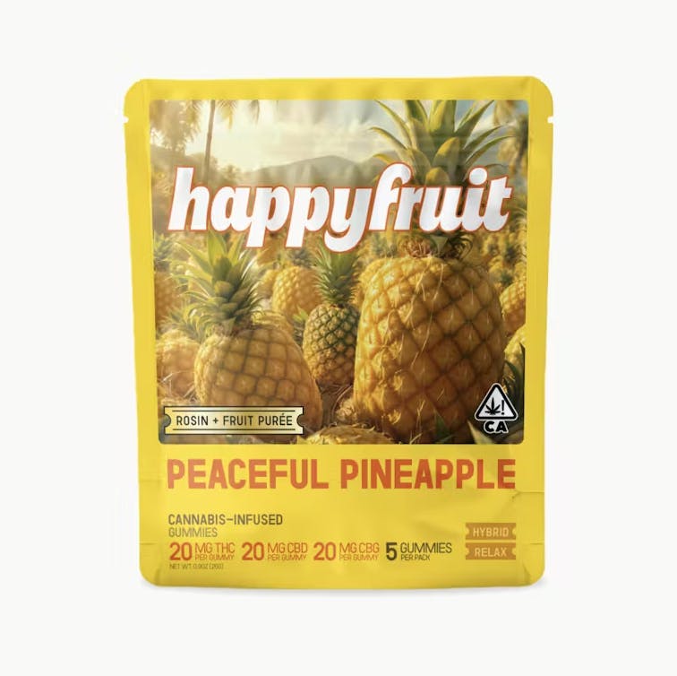 1:1:1 PEACEFUL PINEAPPLE ROSIN GUMMIES - 5 PACK - 100MG - THC:CBD:CBG - HAPPY FRUIT