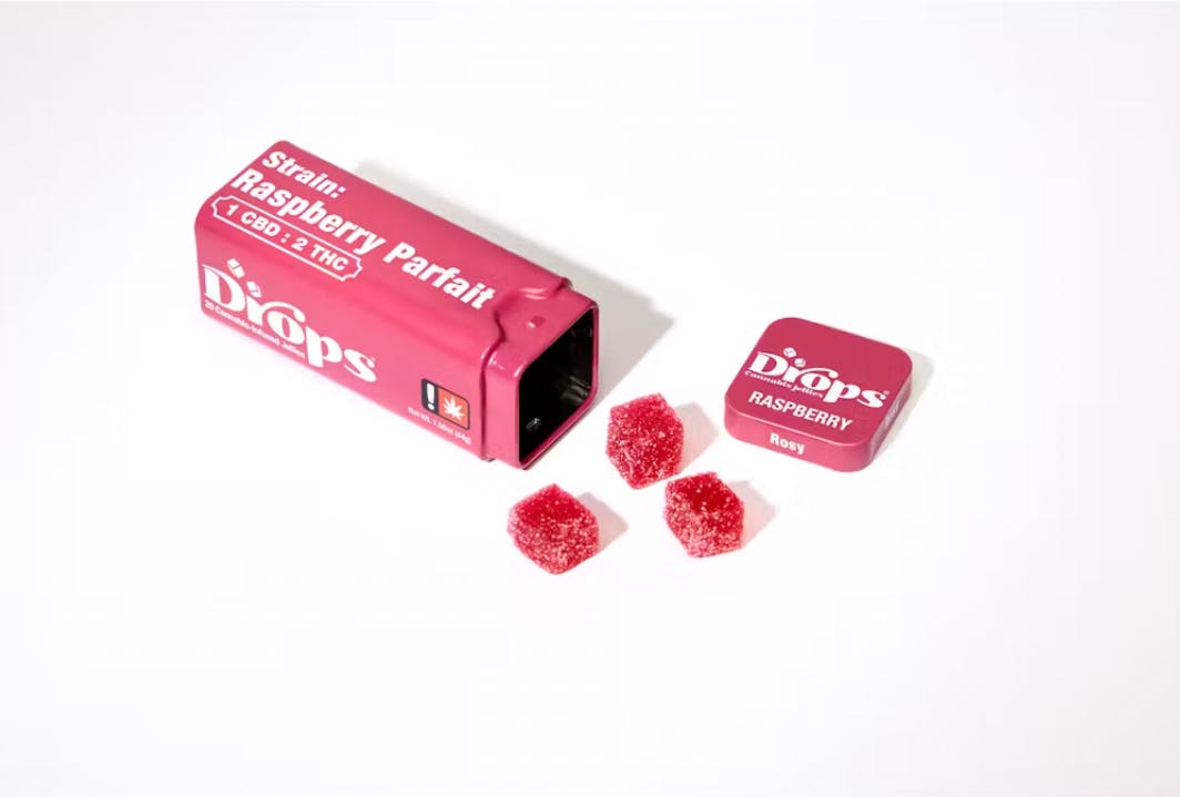 RASPBERRY | LIVE ROSIN | 1:2 CBD:THC | GUMMIES | 20PC | 100MG | DROPS