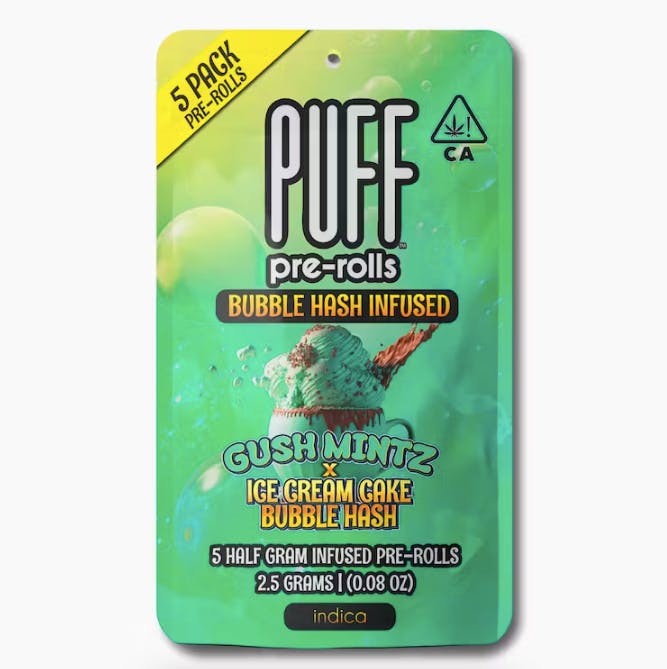GUSH MINTZ X ICE CREAM CAKE | INFUSED BUBBLE HASH PRE-ROLLS | 5 PACK | 2.5G | INDICA | PUFF
