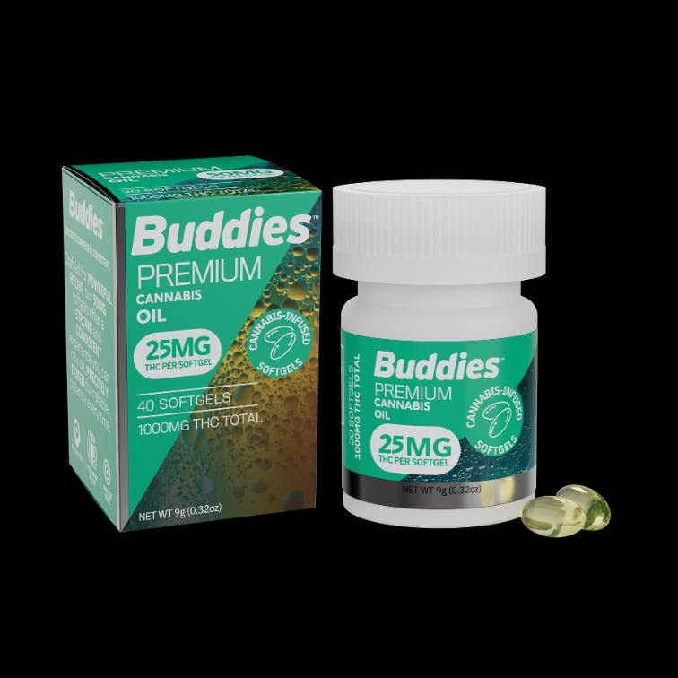 THC SOFT GELS - 25MG - 40 COUNT - HYBRID - BUDDIES