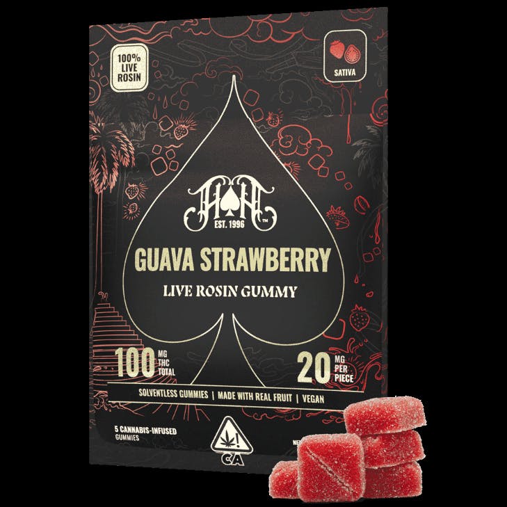 GUAVA STRAWBERRY - LIVE ROSIN GUMMIES - 5 PIECES - 100MG - SATIVA - HEAVY HITTERS