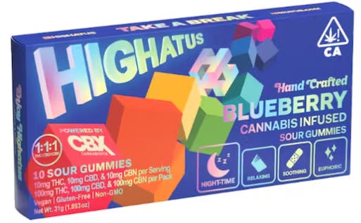 BLUEBERRY GUMMIES | 100MG | 1:1:1 THC:CBD:CBN | INDICA | HIGHATUS