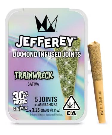 TRAINWRECK - DIAMOND INFUSED - JEFFEREY JOINTS - 5 PACK - 3.25G - SATIVA - WEST COAST CURE