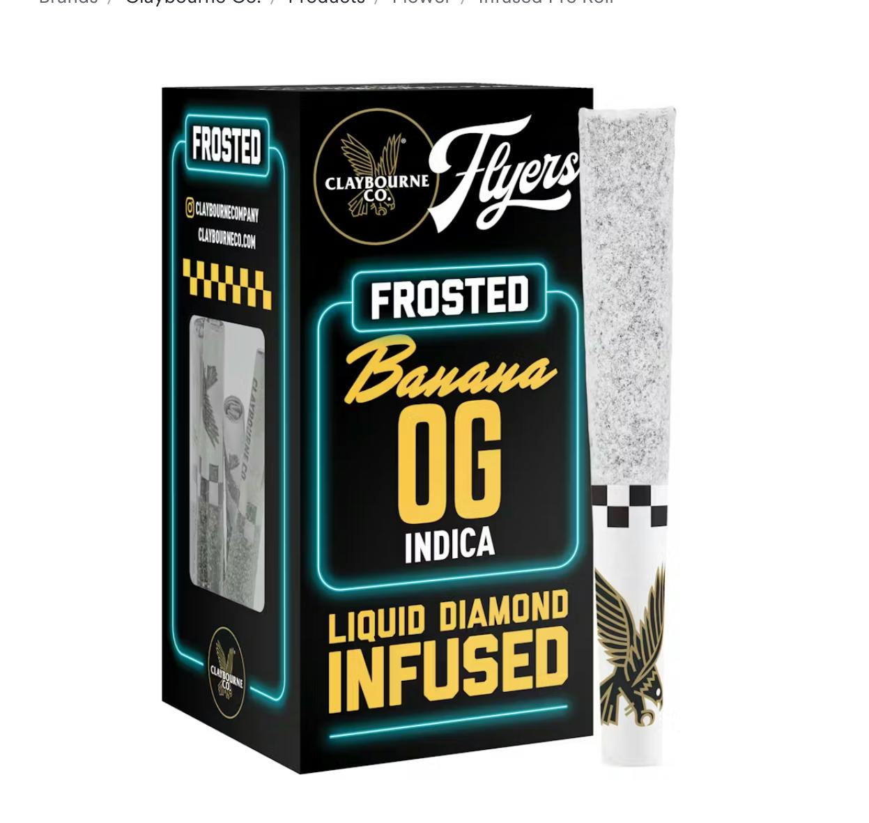 BANANA OG - DIAMOND INFUSED - PRE-ROLLS - 5 PACK - INDICA - CLAYBOURNE FROSTED FLYERS