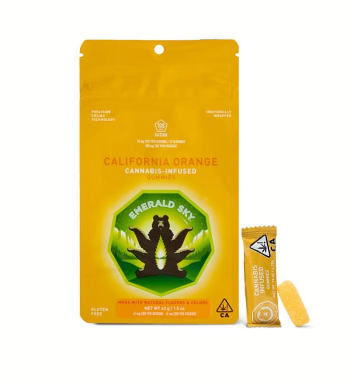 CALIFORNIA ORANGE GUMMIES 10 PIECES - SATIVA -100MG - EMERALD SKY