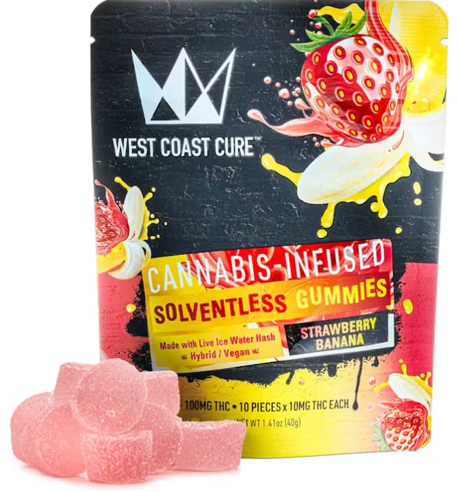 STRAWBERRY BANANA | SOLVENTLESS LIVE RESIN ICE WATER HASH | GUMMIES | 100MG | HYBRID | WEST COAST CURE