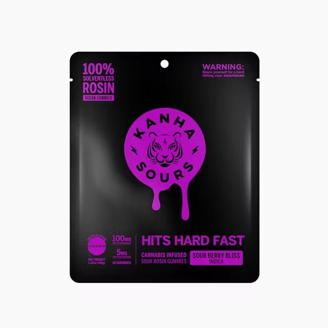 SOUR BERRY BLISS 10PC - SOLVENTLESS ROSIN GUMMIES - INDICA - 100MG - KANHA