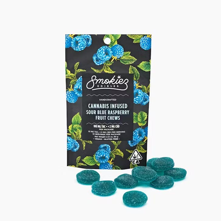 SOUR BLUE RASBERRY GUMMIES - INDICA - 100MG - SMOKIEZ
