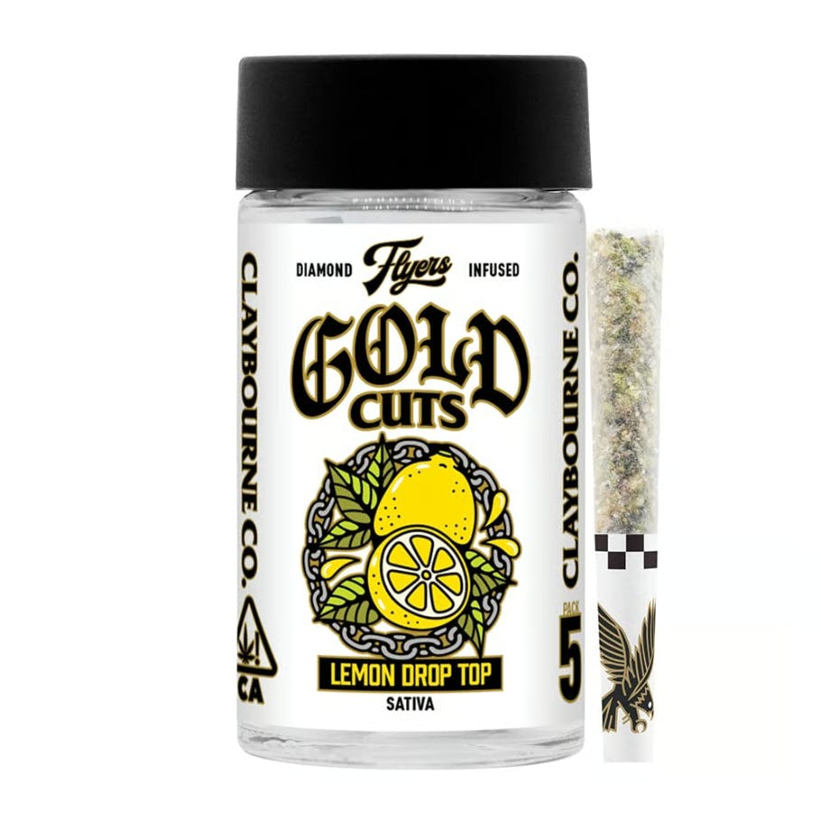 LEMON DROP TOP - DIAMOND INFUSED - PRE-ROLLS- 5 PACK - 2.5G - SATIVA - CLAYBOURNE GOLD CUTS