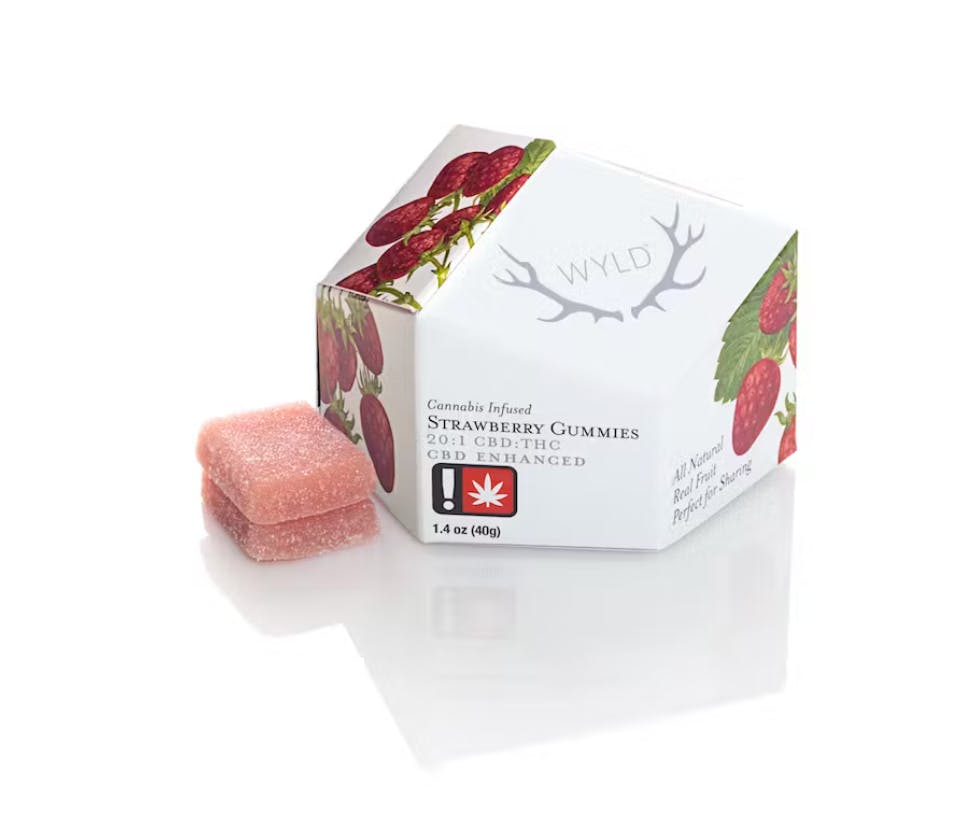 STRAWBERRY 20:1 CBD:THC GUMMIES - HYRBID - 100MG- WYLD