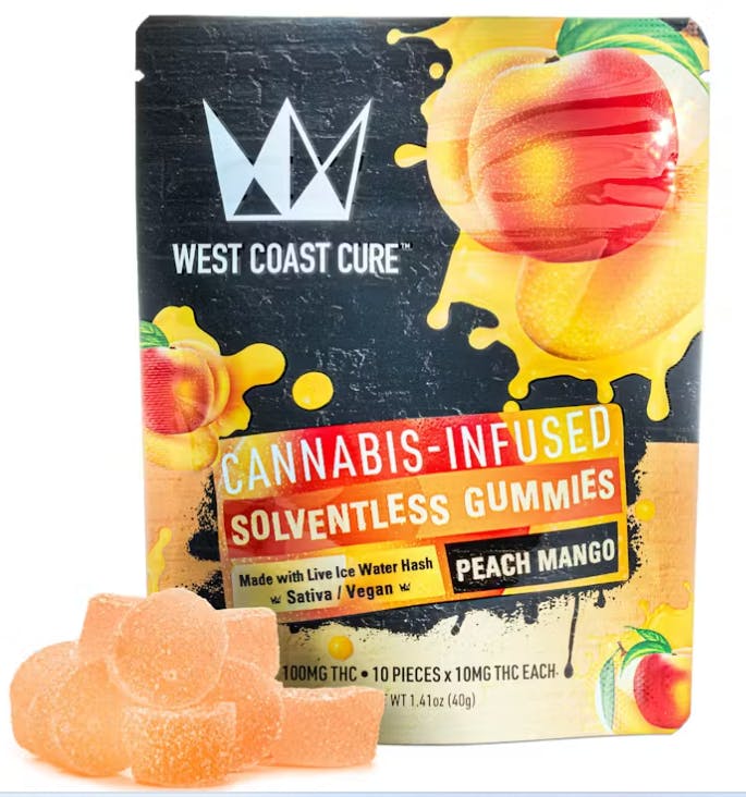PEACH MANGO | SOLVENTLESS LIVE RESIN ICE WATER HASH | GUMMIES | 100MG | SATIVA | WEST COAST CURE