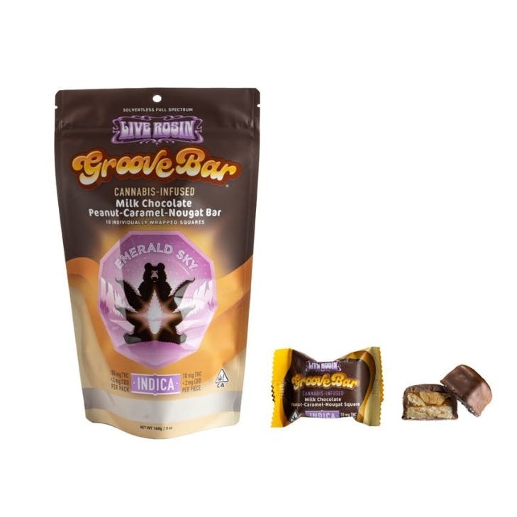 MILK CHOCOLATE LIVE ROSIN GROOVEBAR - 100MG - INDICA - 10 PACK - EMERALD SKY